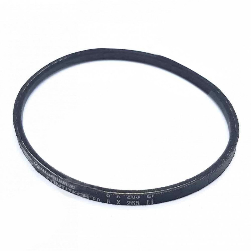 Courroie trapézoïdale lisse de marque Contitech. Elle a une largeur en haut du trapèze de 5 mm pour une hauteur de 3 mm. Sa longueur intérieure (Li) mesure 265 mm et sa longueur extérieure 284 mm.